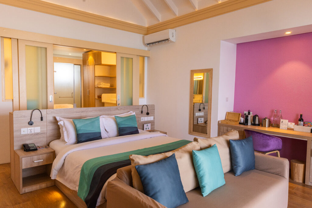 U vili na vodi, jastučići i prekrivači su u nijansama plave i tirkizne, da gledajući njih zajedno sa pogledom na okean iz sobe, vidite identičnu sliku. A u vilama na plaži, identičnu stvar imate sa zalaskom sunca, sve je u nijansama zalaska.