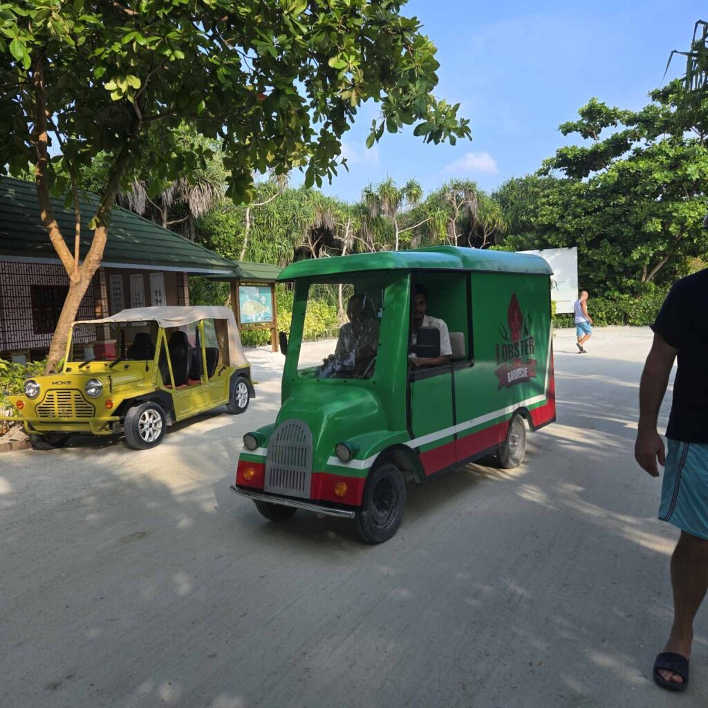 Ostrvo je veliko toliko da svugde možete peške, a nigde ne morate, jer električni otvoreni ljubičasti autobusi voze na svakih par minuta. Stanice su vrlo kreativno napravljene, svaka je različita. Najsitniji pesak je ispod nogu dok čekate prevoz, bukvalno kao brašno. Samo kažete vozaču gde želite da idete i on vas tamo vozi. Na displejima je mapa, sa oznakom gde se nalazite i koji autobus kada stiže i u kom pravcu ide. Nakon par dana, deca su sama išla po ostrvu.