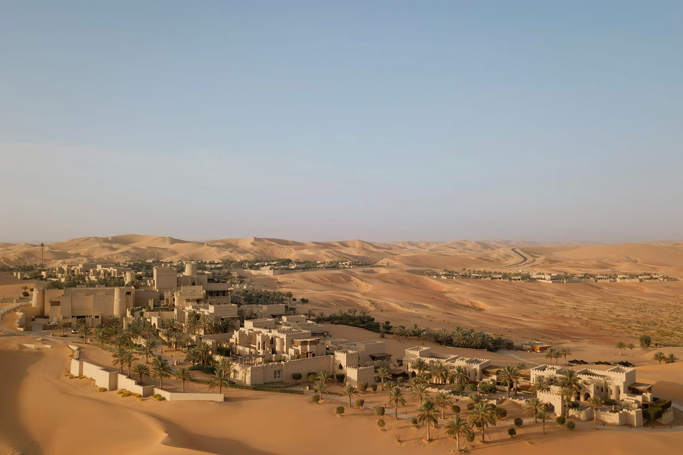 Hotel: U središtu pustinje Liwa, Anantara Qasr Al Sarab Desert Resort uzdiže se poput mirne tvrđave oblikovane od peska i svetlosti. Njegova arhitektura, nadahnuta arapskim dvorcima, spaja kamen, glinu i drvo u sklad koji odražava duh Emirata i spokoj beskrajnih dina. U prostranim dvorištima smenjuju se senke palmi, mirisne bašte i fontane, dok centralni bazen pruža osećaj da voda i pustinja dišu istim ritmom.