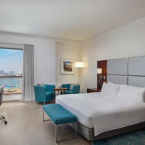 King Executive Room with Sea View – Balcony (oko 49,6 m²) nudi balkon sa pogledom na more, pristup Executive Lounge-u sa doručkom i večernjim osveženjima, kao i sve standardne sadržaje poput LCD TV-a, Wi-Fi-ja, aparata za čaj i kafu, mini-bara, sefa i kupatila sa kadom i tušem.